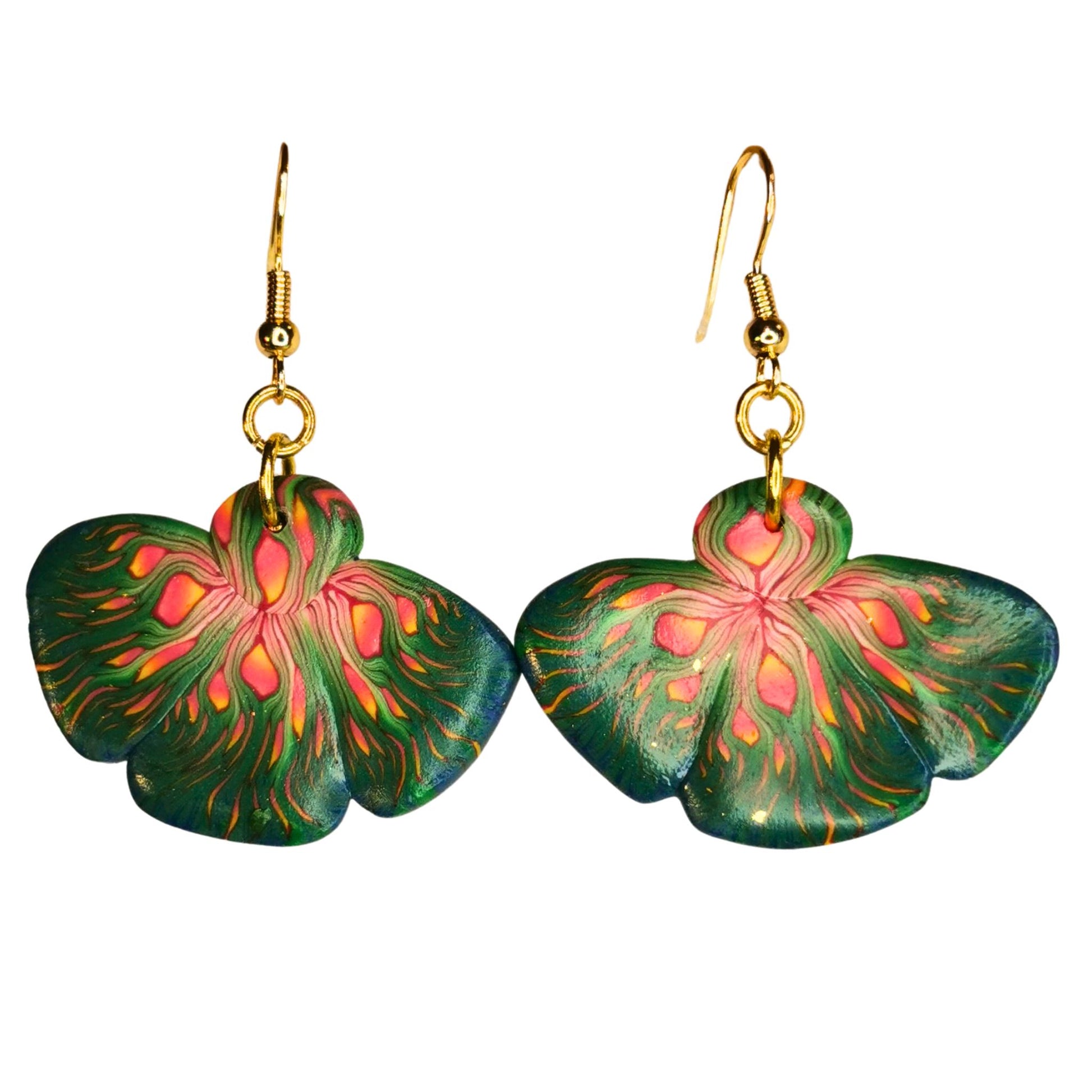 Unikke og charmerende hængeøreringe i et eksotisk blomster mønster, der tilfører et strejf af elegance til ethvert outfit. Øreringene er utroligt lette og behagelige at have på – perfekte til både hverdag og fest.